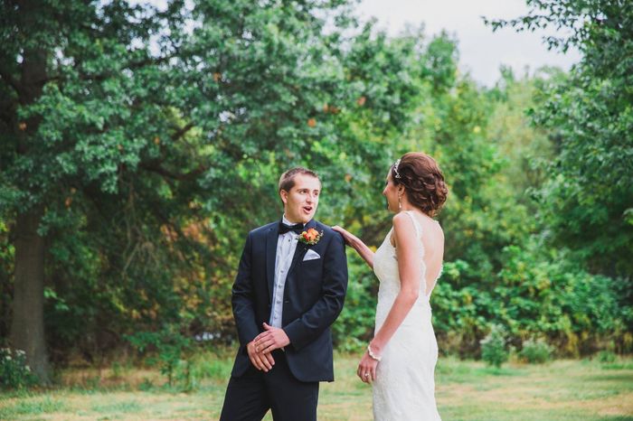 We were undecided about first looks. I had always dreamed of that moment of him seeing me for the first time be when I was coming down the aisle. Once we considered time constraints and how much easier it would be- we figured we'd go for it. Let me...