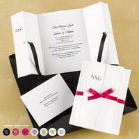 I was working on ideas to bundle my invitations, i am not sure if i like them or they look cheesy. I just threw these together and i would buy correct size ribbon for the first one, and black card...