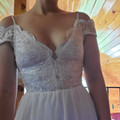 So I decided I want to add a skirt to my wedding dress for the ceremony and then remove it for the reception. My dress right now has a slimmer a-line which i do love but the thing I'm not crazy about...