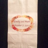 We decided to have our popcorn bar during the cocktail hour so our guests have something to occupy them while we take our photos. I designed stickers that match our invites to put on the bags. Do you...