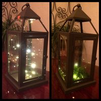 I'm trying to achieve a enchanted forest/fall vibe for the reception decor. I'm working on filling some lanterns right now and I can't decide which I like better. I have one with just tiny string...