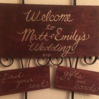 Stained and painted some signs! I have one more larger board and I can't decide if I should do a timeline of the day since we won't have wedding programs or a unplugged ceremony sign.