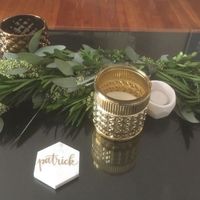 We're going to do garlands running the full-length of our rectangular tables instead instead of centerpiece arrangements. I found a great vendor (Everleaf Greens) and have chosen the variety I want...