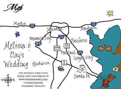 I was just going to print my own business cards with written directions to the church. Like 1. Driving south on Rt 13, turn.. 2. Turn on.. 3. Make a right.. Blah, blah, blah. Like that. But FS says we should include maps. He says a map would be...