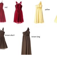 Which dress & color do you like best? I have 2 bridesmaids trying to pick either one or two HELP? our wedding colors are "fall" red, orange, yellow, brown. 1st pic is all dresses we looked at 2nd pic...