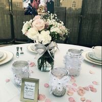 I think I created a vision for my centerpiece! Colors are ivory, blush, & silver/gray. Neutrals. I have three different options what do you ladies think ? P.s. Where the pictures of us are are going...
