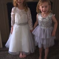 Well my dresses finally came in and my girls look adorable in them! The white one is the main flower girl, and the grey is my little girl ring bearer. Then there will be three little blush flower...