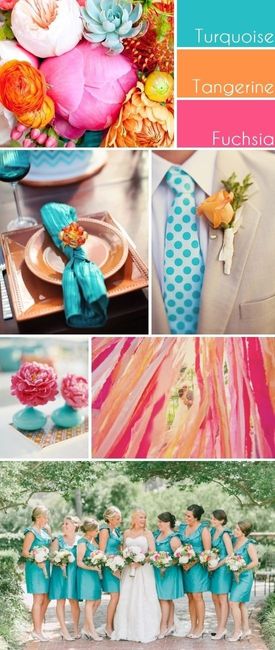 I am a bit stuck on which colors to use for my wedding. I like bold, dark colors paired with bright colors. I'm stuck between deep purple with bright yellows and oranges (below) and navy and pink (in the comments). Let me see your colors!