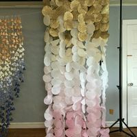 I'm sooo excited. I ordered an ombre circle garland (gold to white to blush- my wedding colors) from a seller at etsy. I was just sent a pic of what it looks like and I LOOOOVVE it! This is a partial...