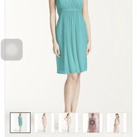 My colors are Aqua blue and magenta/purple. I want them to work together without clashing so thinking about maybe making one an accent color. My bridesmaids are wearing this exact dress in this color....