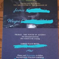 Yay!! My FH designed our invites and I couldnt be happier with them!! Love them so much!! Just finished stuffing and stamping 70 envelopes, they are all set to be mailed out tomorrow! Just over 2...