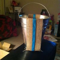 Each table will have two of these buckets filled with peanuts. There will be a daisy also attached to the front of these and the table number will be in the center of that flower. Got 3 done, 21 more...