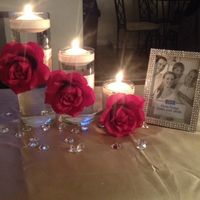 When brainstorming my centerpiece I just knew I did not want floating candles. It just wasn't my thing. I really wanted a nice lush red rose pomander centerpeice on a tall cylinder vase! Pricing got...