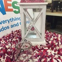 I'm at the store right now and I can't decide which candle holder to get. This isn't the lantern, our lanterns are all white. But I want to put four candles around the lantern with sand and shells....