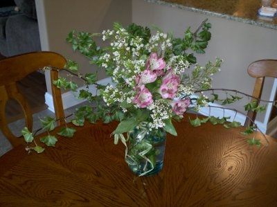 A family friend offered to assist with making flower arrangements for the reception, so I am trying to think of a cute diy project. The seating is at long banquet tables of 10 people each. I had the idea of having three mason jars with yellow...