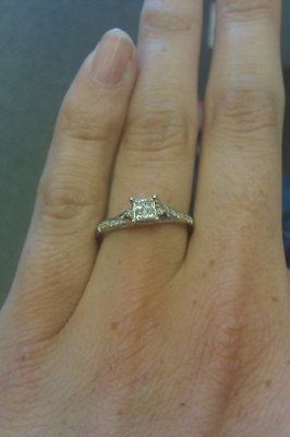 We met through a mutual friend, neither of us looking to find one another but as you see we defined even our odds. We had our first date May 11th 2010 and ever since then have been inseparable. When my FH (Chris) proposed to me I didn't exactly know what to think...but here is the story. He was working out of town about 700 miles away; he kept telling me that he had a surprise for me when he came home for Christmas. Well Christmas came and went and I still hadn't received my surprise; I actually forgot to ask about it. Anyway, I planned a trip to see him for New Years where we went to a nice hotel right on the beach; we spent the day shopping around and lounging in our room just feeling blessed to be together. We spent New Years together in our room watching the ball drop; shortly after we went to bed. The next day we did about the same as the first day, the evening rolled around so we decided to go lounge in the hot tub that overlooked the ocean and hearing the waves crash against the cliff side; it had been raining a bit that evening. We had been somewhat quiet the whole time just taking in the relaxation when he finally asked if I wanted to know what my surprise was; I said "uh ya!" he then said he was going to ask me to marry him...I was shocked and it took me a few minutes to respond, and when I did I asked him if he was still going to ask me...right there he took my left hand kissed it and asked me to marry him. Aww it was perfect :)