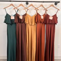 2My fiancé and I's "special colors" are green and orange. We've fudged that to "emerald and rust" in the interest of not looking tacky. These are what my bridesmaids will be wearing, with my two MOHs...