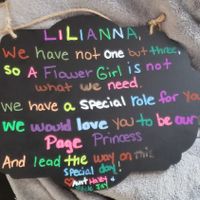 How do I ask my now 7 year old nephew ( 10 at the wedding) to be my sign holder(page prince) in my wedding. I already made something to ask my fiancees niece and want something similar but I dont know...