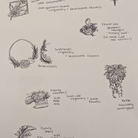 I'll be DIYing some of my florals (tables and venue will be covered by a florist). Here's some of my sketches- the theme is gold and green geometric/modern.