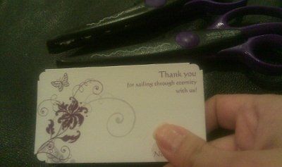 My wedding colors are royal purple, grey and black. Should I have scroll-y heart thingies in white or royal purple? I like purple because it'll really pop (lots of contrast) and white on white looks a bit washed... but I also don't want to look back...