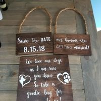 We got signs made for our engagement pictures that say "our humans are getting married" as well as a sign for the reception that we are going to put on a table for "dog favors" with dog treats. I am a...