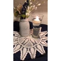 This is my centerpiece. The tablecloth is navy. Our colors are navy, lightish green, & gray. Our theme is rustic/bohemian. We are getting married under a tree and our reception is in a barn. What are...