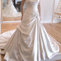 My dress is an a-line satin with a semi-cathedral train. We're having a 3:00 PM church wedding that will be fairly formal (groom and groomsmen in tuxes, etc). The dress boutique showed me a double...