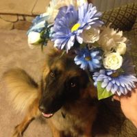 Finished up the floral arrangement for our fur baby to walk down the aisle in!! Best part is-she's not bothered with wearing it!!
