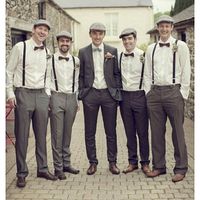 Im having a hard time deciding on what the bridesmaids will wear! The theme of my wedding is rustic/vintage so the groomsmen will wear suspenders and bowties and a hat just like in the pic below. The...