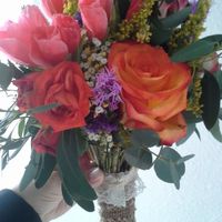 Just wanted to offer up my supplies! I have floral tape, floral pounds, burlap ribbon and about a yard (or more) of lace! Here is how it was used on my bouquet..