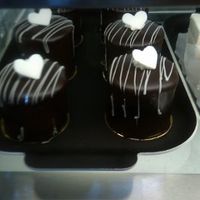 Many of you will remember that my friend owns a bakery, and I found these adorable little mini cakes that I wanted. FH doesn't like frosting, and these are actually coated in fudge, so they were...