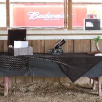We both love the atmosphere of the Renaissance fair, but due to scheduling issues could not have it at our local fair, SO WE MADE OUR OWN! We welcomed guests to dress up as Renaissance, Medieval, Time-Traveler, Video-game, book, movie characters or just make up their own (we had everyone from Dr Who and Star Trek officers to lost Hawaiian tourist). We had our ceremony in an easy to walk to cave which helped everyone get into a magical mind set. At our reception we had a sword fighting pit complete with foam swords and shields, a s'more roasting area, dance floor, pic-nick tables with table clothes in our wedding colors, an "alter table" as our gift table and just made it very rustic. We served appetizers, cake and wine. We stepped over swords, danced the time warp, fought our family members and had a blast. Ha-zah!