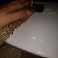 Couldn't find the perfect placemats for the reception. So I bought bulk burlap and made them. Totally blanked on the fact that our head table was featuring a burlap runner. The only thing I can sew is...