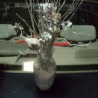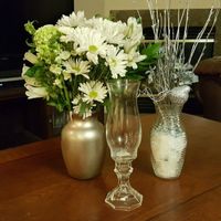 So here's my thought. My first plan was to paint the vases a rose gold...the color is have here isn't quite right. Then I was gifted these centerpieces with silver. The small hurricane I'm planning to...