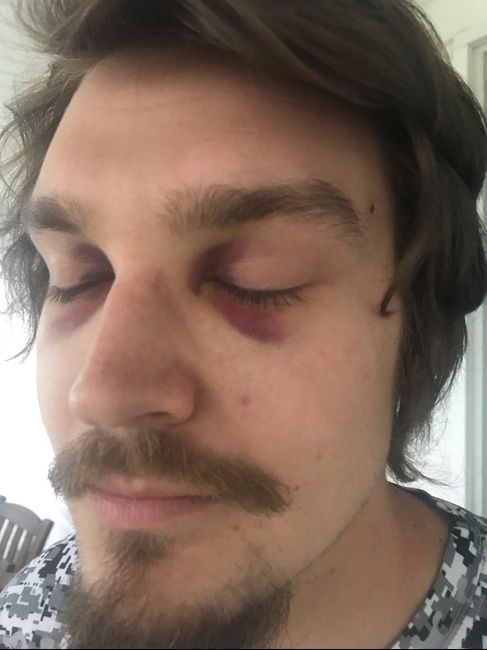 Y’all. 5 days out and I come home from my mini vaca to see my fiancé with TWO BLACK EYES! apparently his bachelor party (at our house, like just an laid back night🙄) got a little out of hand between him and a groomsman. Neither remember what...