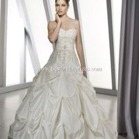 I am seriously thinking about finding a pretty bolero jacket to wear with my wedding dress. I'm slightly self conscious of my arms, back etc. There is a picture of my dress below, first with the model...