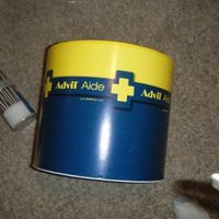 I got the advil bucket from work for free. So the before picture is on the left and the after picture is on the right. I feel like it still needs something. Beading? Another word? Date? Its my card...