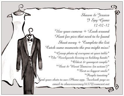 Does anyone have any examples of I spy cards that they used? I want to use this on my wedding day during the reception, but I'm not really creative and I'm not sure how to make them.