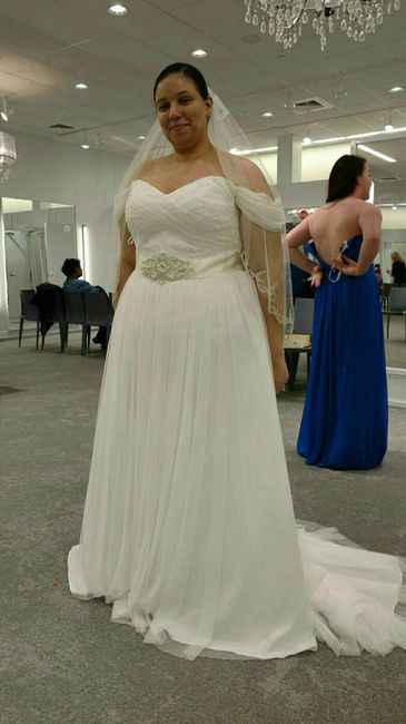 I haven't been on here in a few days, so forgive me if there is already a thread, but I scrolled through a few pages and didn't see one. I had some doubts about my wedding dress mainly because I have VERY broad shoulders but I walked into a David's...