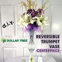 Created this 19" reversible trumpet vase for $4 from Dollar Tree Items. Silk flowers also from DT but you can use real flowers if you want. Normally these vases run for $20 each....