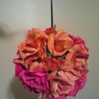 I am so proud I completed my first trial run of my flower girls kissing balls. The color is a little off in the picture because I took it with my camera phone. Tell me what you think.