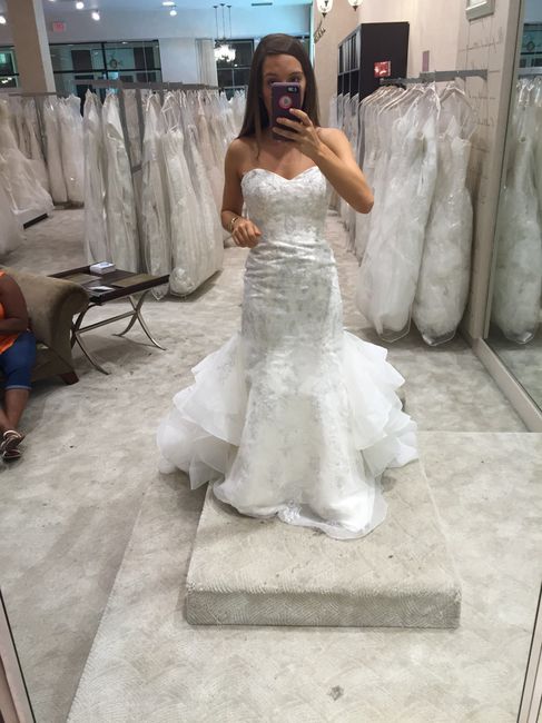After three months of struggling with a short time frame and off the rack sizing issues, I think I'm finally saying yes. I've tried on over 50 dresses and I think this one will be the one for my art nouveau bar wedding! (Am I the only bride who...