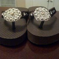 So what do you think? I got the flip flops on sale at Target for $1.53, then I got the ribbon, jewels, and bead flower from Hobby Lobby all for about $5. This is the first pair, I have...