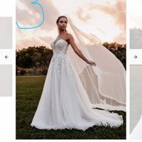 1Ladies, please help me! I am sick over making this decision and have no luck deciding. I am having a barn wedding this October. My fiancé expressed he likes less poofy dresses, so I tried a mermaid on...
