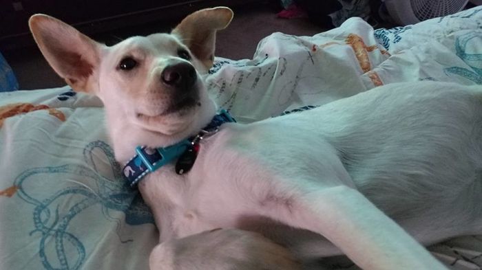 Snuggling on the couch with pup tonight drinking wine since DH doesn't come from his work trip until tomorrow. I moved the slightest bit and she Weasled herself into my spot and stole the pillow. She loves watching tv-especially if there is animals...
