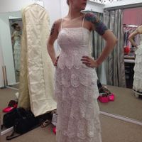I am so much happier with my dress now after my first appointment for alterations. She going to hem it, add a clasp on the side, add cups, and most importantly...add straps!! I felt soooo naked with...