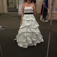 So i the only photo i have is from when i first picked out the dress. It is curretnly being altered and i pick it up next week, my dress is Ivory (the one in the photo is white). THe sash is a...