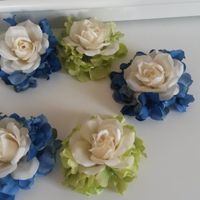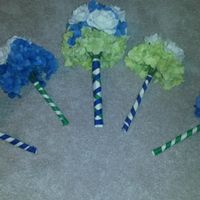 I am not a creative person by a long shot but I am so proud of myself. I'm in the final stages of finishing my bouquets. All I need to do it hot glue some of the hydrangea leaves underneath the...