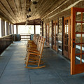 My venue is two levels. The main level is where the ceremony will be held and is an open room with two fireplaces and 10 rocking chairs. There are also 2 couches that sit 3-4 and another 4 chairs....