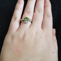 So my Fiance got me this gorgeous sterling silver claddagh engagement ring that has diamond accents and a peridot heart. I am trying to look online to find a wedding band that would match with it but...